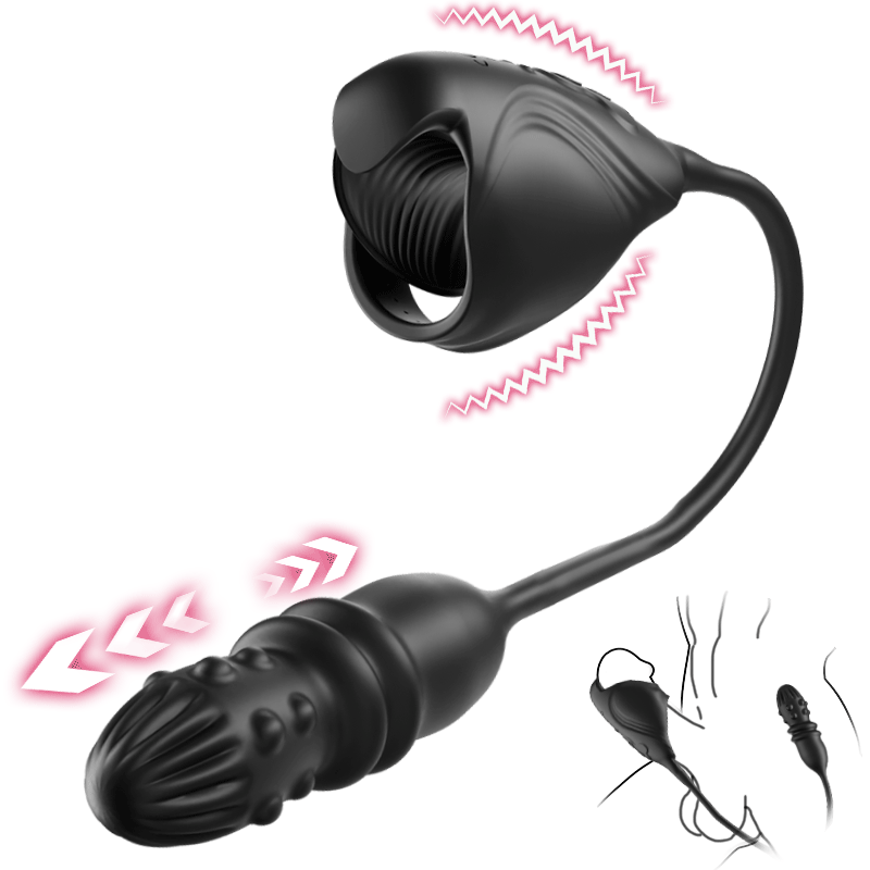 - Doppelseitig: 7-stufiger stoßender Analvibrator & 7-stufiger vibrierender Penisstimulator